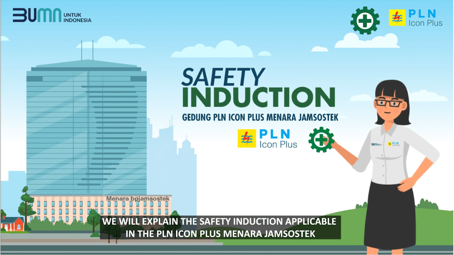 Untuk alasan keamanan dan keselamatan, pengelola gedung perkantoran memiliki penjelasan dan pengarahan tentang Keselamatan dan Kesehatan Lingkungan Kerja. Spora Comm membantu PLN ICON+ membuat video panduan yang mengingatkan potensi bahaya, pengendalian bahaya, alat pelindung, tangga darurat, dan tata cara penyelamatan.